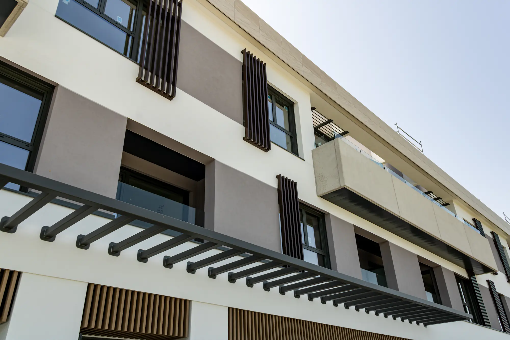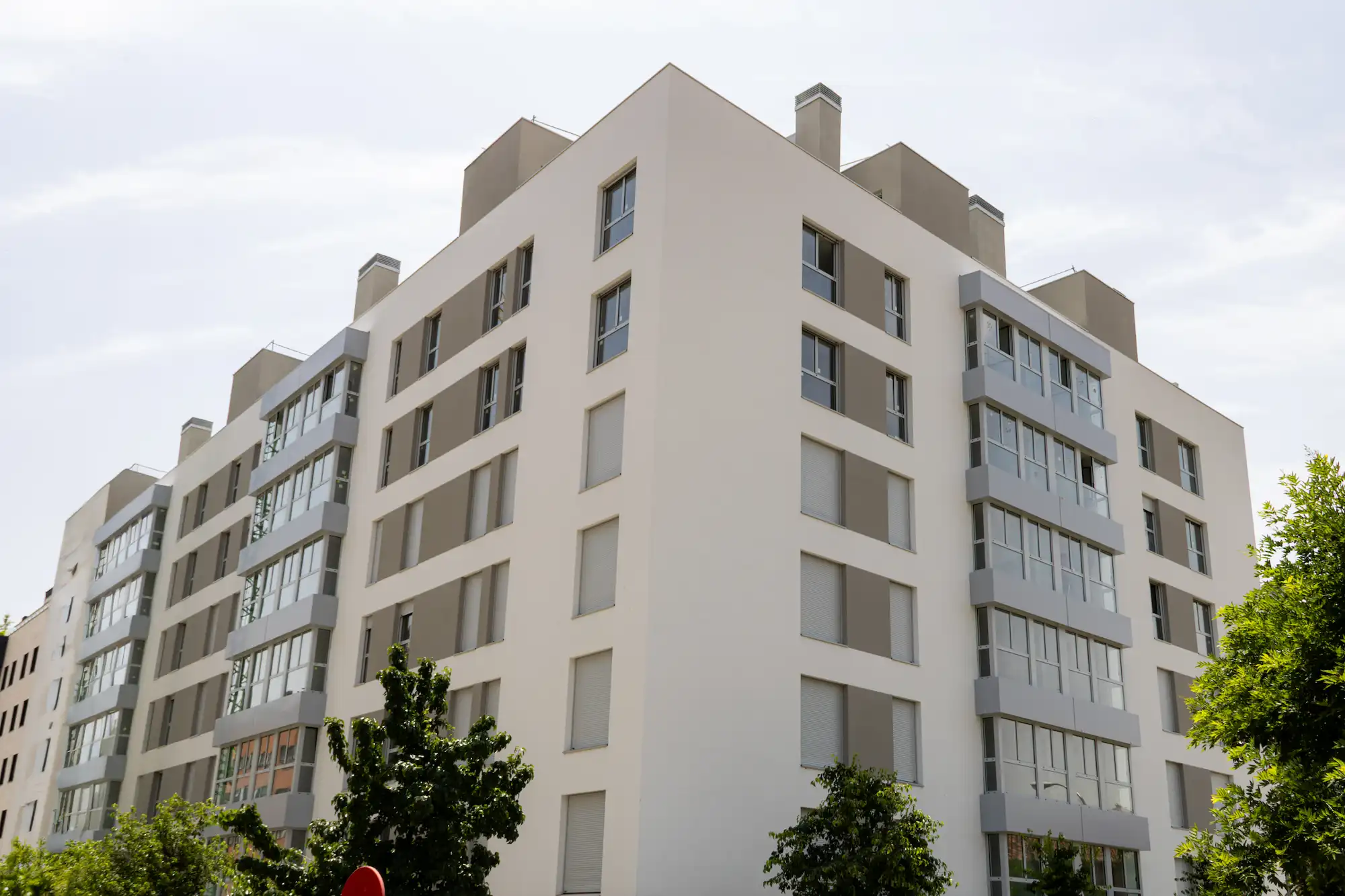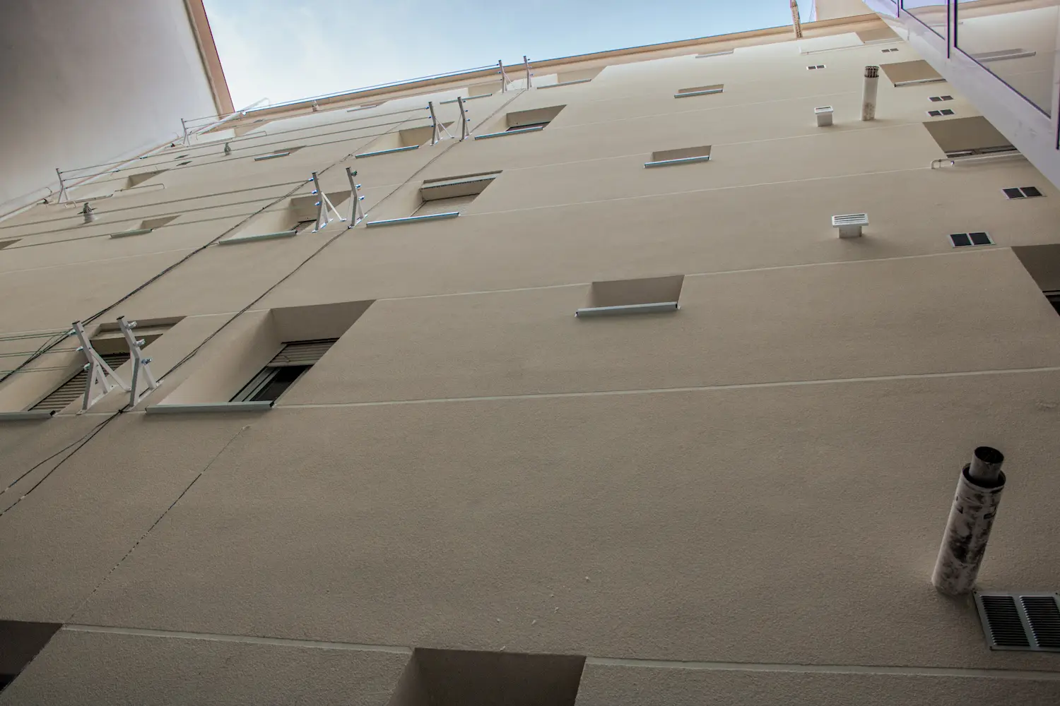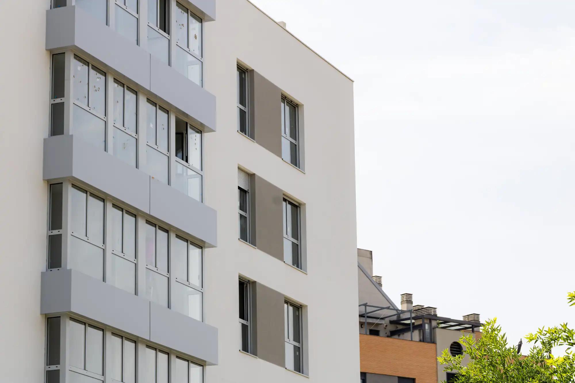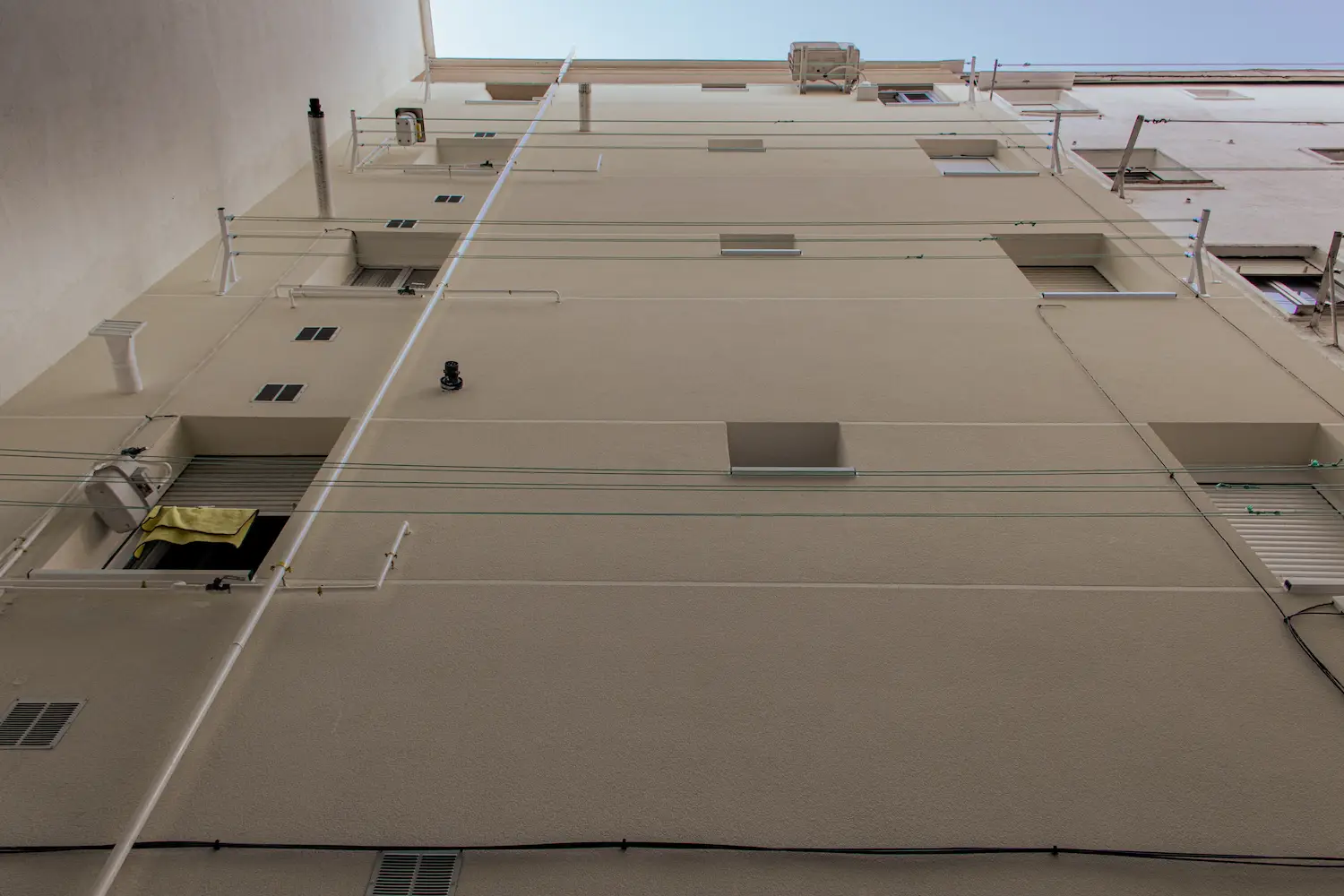 Rehabilitación de fachada con sistema de monocapa raspado. Mejora estética y protección.
